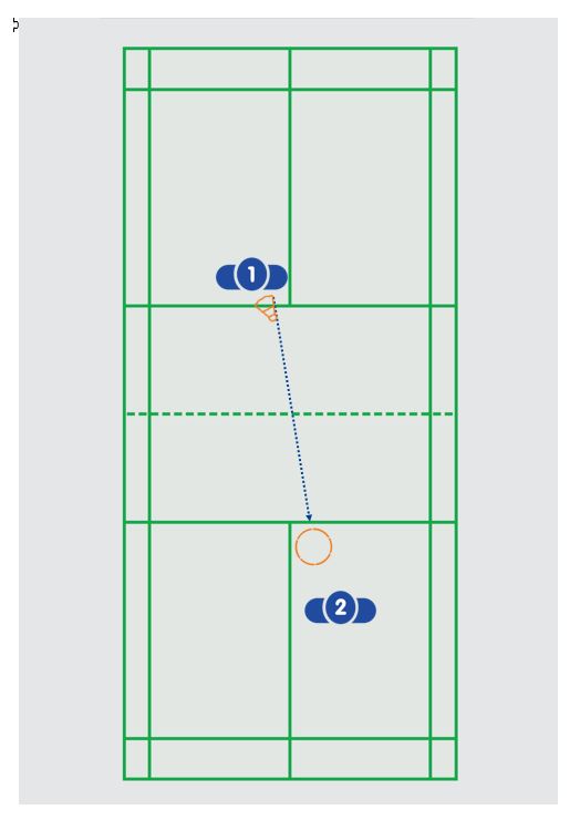- Zet op het net 2 shuttle neer waar tussendoor geslagen moet worden
